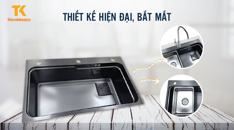 Thiết kế màu đen nhám tối giản nhưng cực kỳ sang trọng, chậu A7545 là món phụ kiện không thể thiếu trang trí cho căn bếp hiện đại của bạn.
