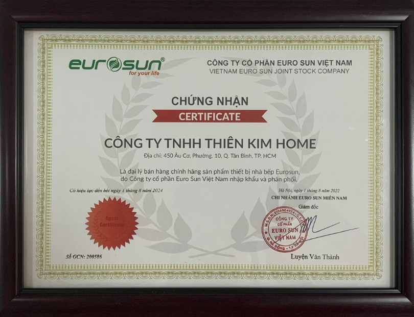 Chứng nhận phân phối thiết bị bếp Eurosun - Đảm bảo chất lượng tốt nhất