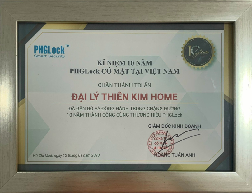Thiên Kim Home là một trong những nhà phân phối chính thức của PHGLock tại Việt Nam. Chứng nhận phân phối tất cả các sản phẩm PHGLock được phân phối tại Việt Nam đều là sản phẩm chính hãng và được đảm bảo chất lượng bởi Thiên Kim Home.