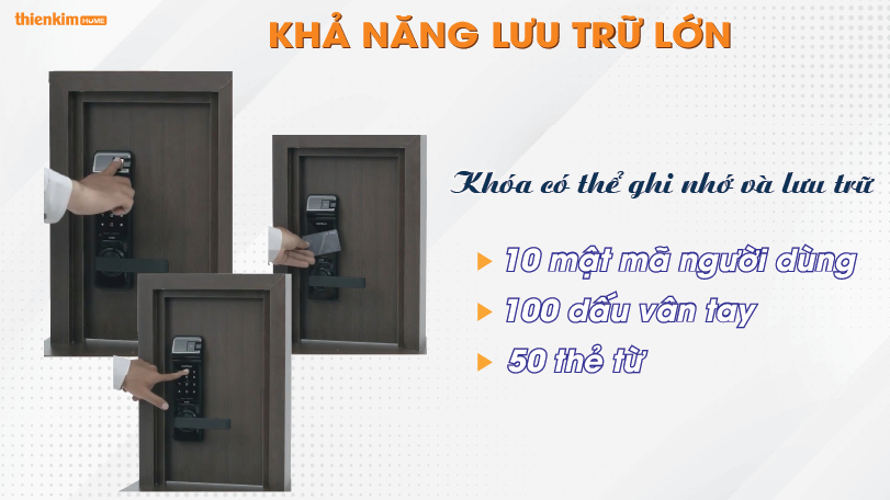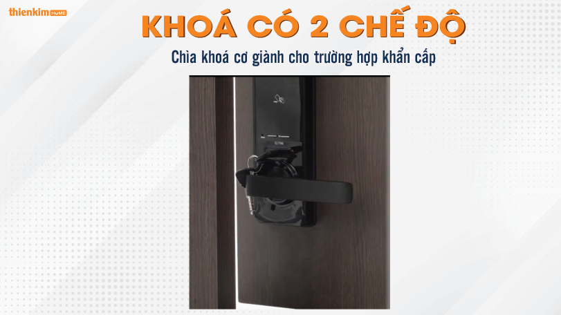 Ngoài ra khóa còn có điểm đặc biệt là có thể kết hợp 2 trong 3 cách đăng nhập là vân tay, mã số và thẻ từ, đề phòng trường hợp có sự cố như trời mưa khiến tay ướt và khó nhận dạng vây tay.