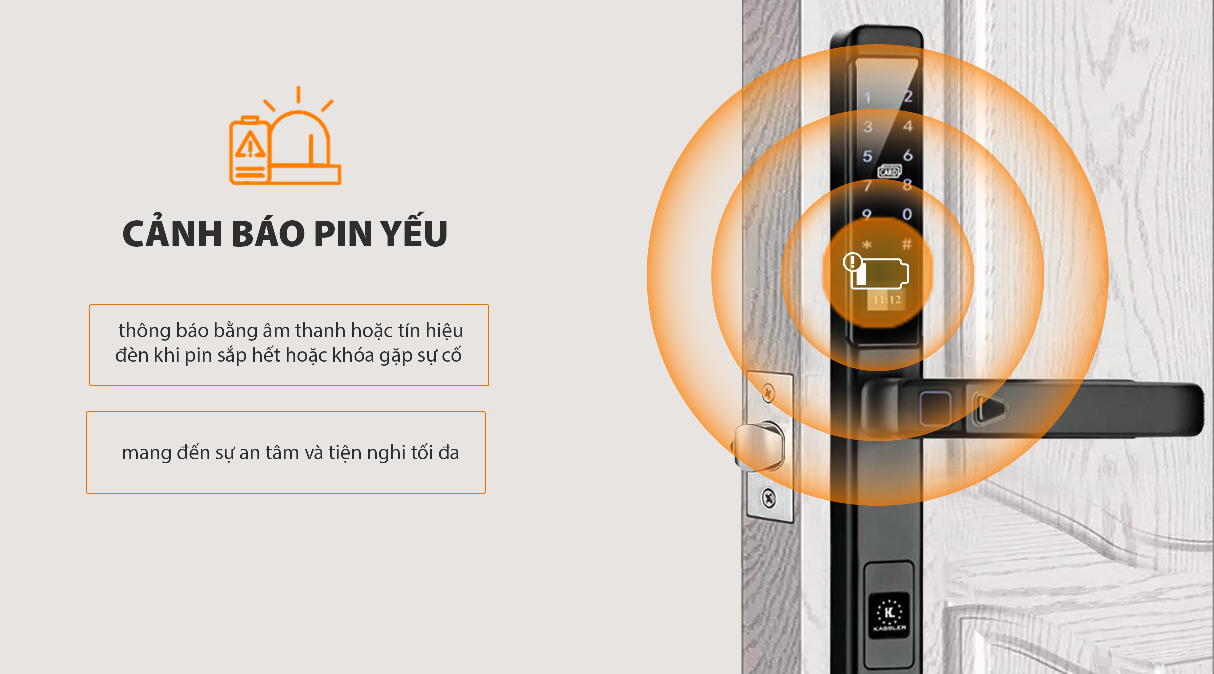 Cụ thể, tính năng cảnh báo pin yếu sẽ tự động thông báo khi nguồn điện sắp cạn kiệt, giúp người dùng chủ động thay pin và tránh những tình huống bất tiện. Đồng thời, hệ thống tự động phát hiện và cảnh báo lỗi chức năng cho phép người dùng nhanh chóng nhận biết và xử lý các vấn đề tiềm ẩn. Điều này giúp đảm bảo khóa luôn hoạt động trơn tru và an toàn.