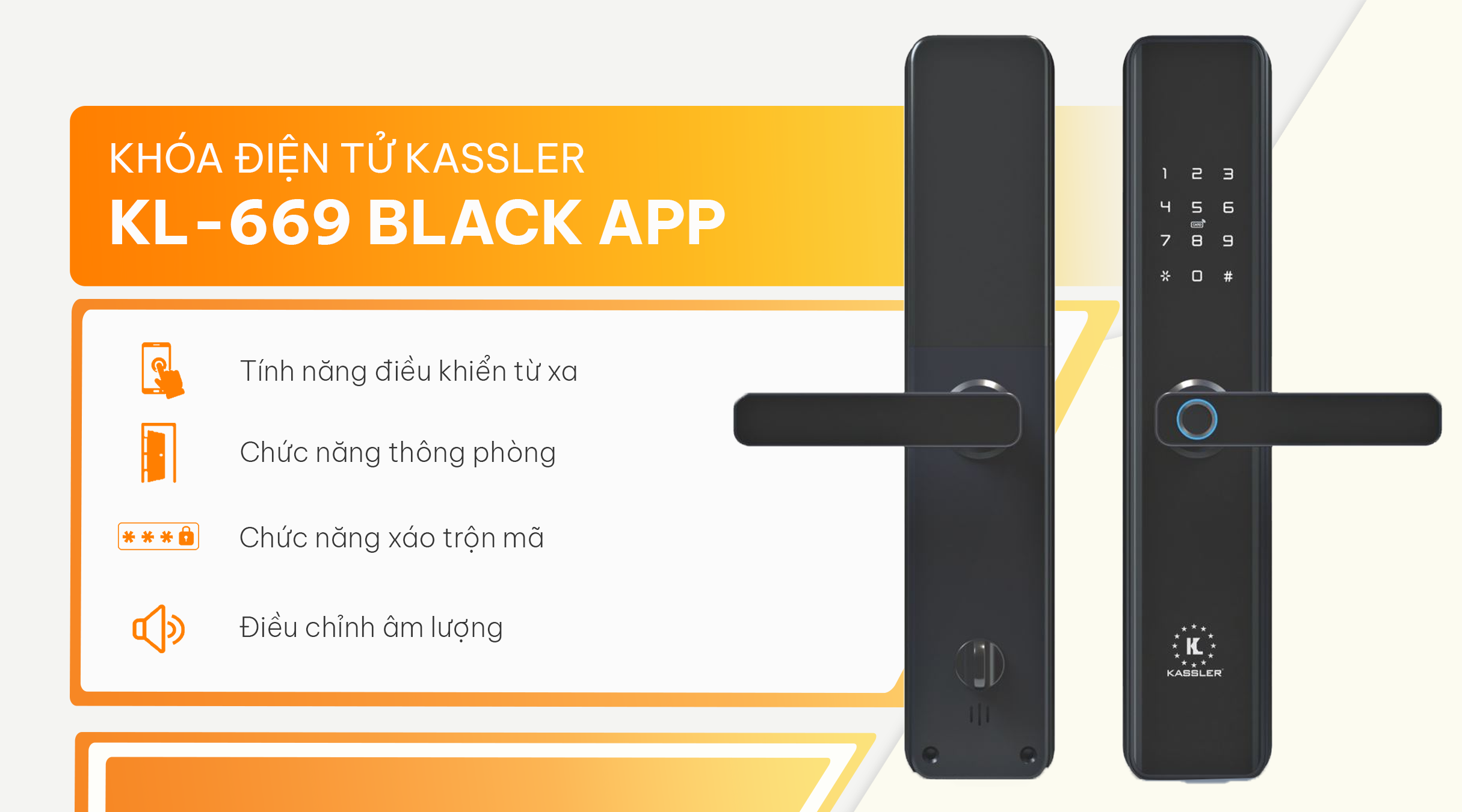Với những tính năng thông minh này, Kassler KL-669 Black APP sẽ là trợ thủ đắc lực giúp bạn quản lý và bảo vệ ngôi nhà một cách hiệu quả, mang đến cuộc sống tiện nghi và an tâm hơn bao giờ hết.
