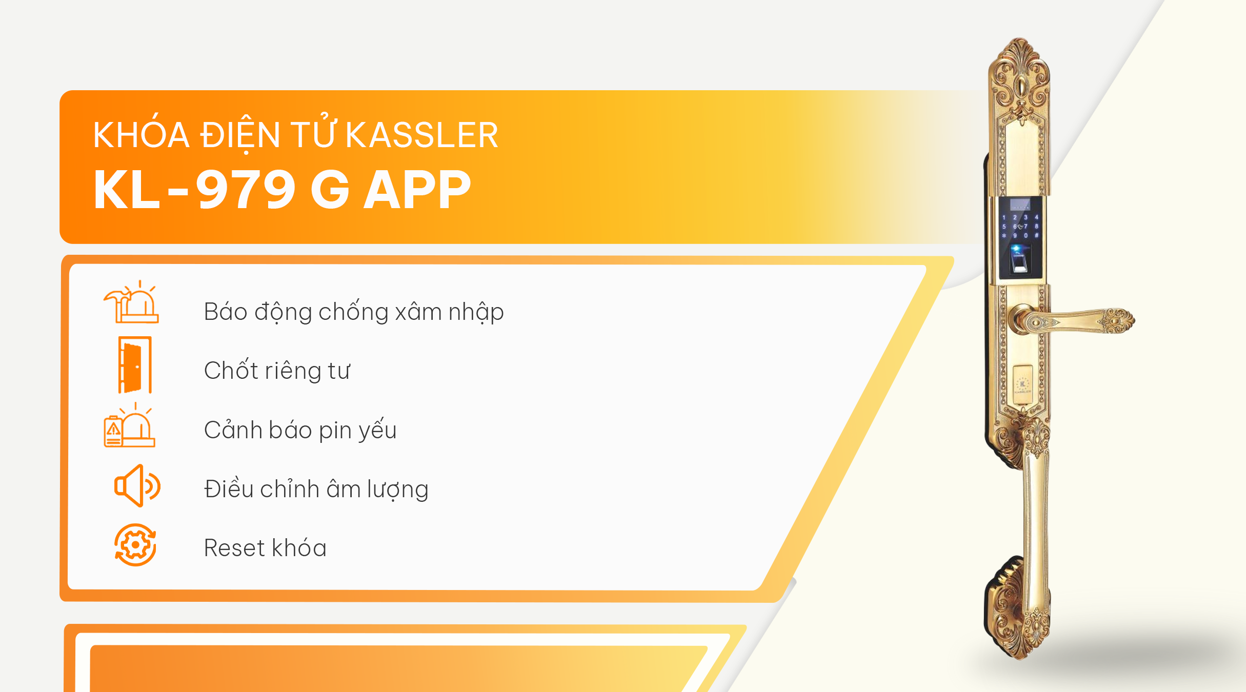 Với Kassler KL-979 G, bạn không chỉ sở hữu một chiếc khóa cửa thông minh mà còn là một giải pháp bảo mật toàn diện, mang lại sự yên tâm và tiện nghi cho cuộc sống hiện đại.