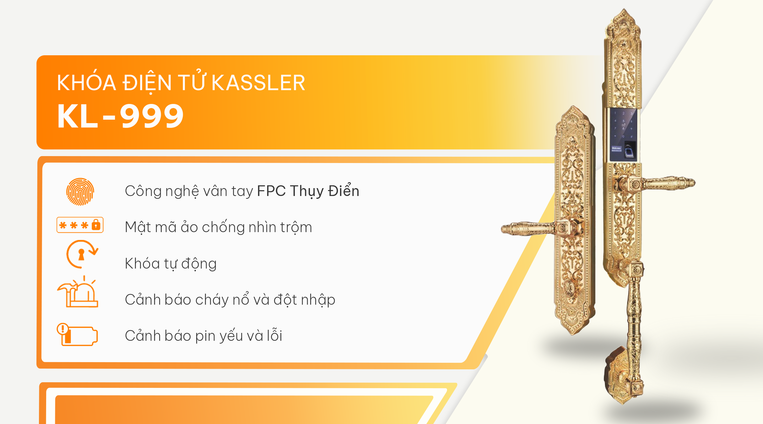 Kassler KL-999 không chỉ mang đến sự sang trọng và tiện nghi mà còn tích hợp hàng loạt tính năng thông minh, đảm bảo an ninh tuyệt đối cho ngôi nhà của bạn. Tiêu biểu như: