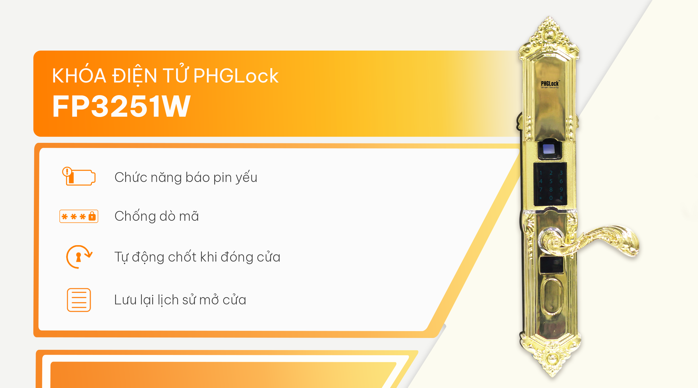 Ngoài sự linh hoạt trong phương thức mở khóa, PHGlock FP3251W còn được trang bị nhiều tính năng an ninh và tiện ích nâng cao, mang đến sự an tâm và trải nghiệm người dùng tối ưu: