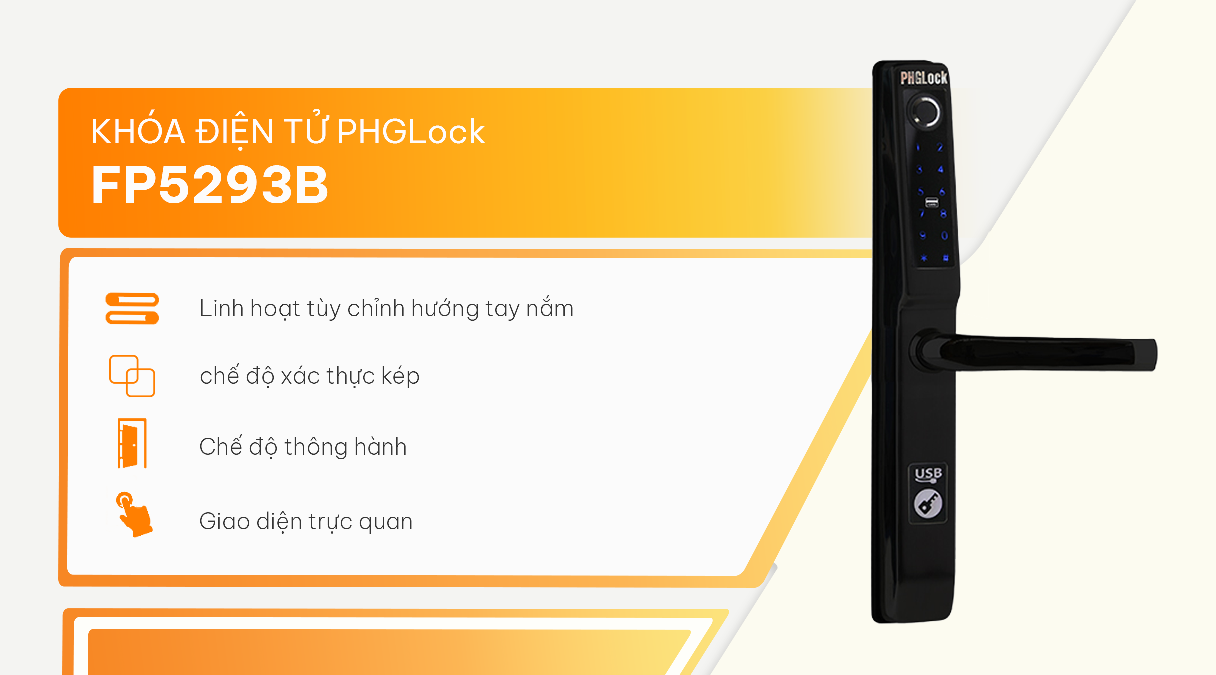 PHGLock FP5293B không chỉ đơn thuần là một giải pháp bảo mật, mà còn là một người bạn đồng hành thông minh, mang đến những tiện ích vượt trội cho cuộc sống hàng ngày: