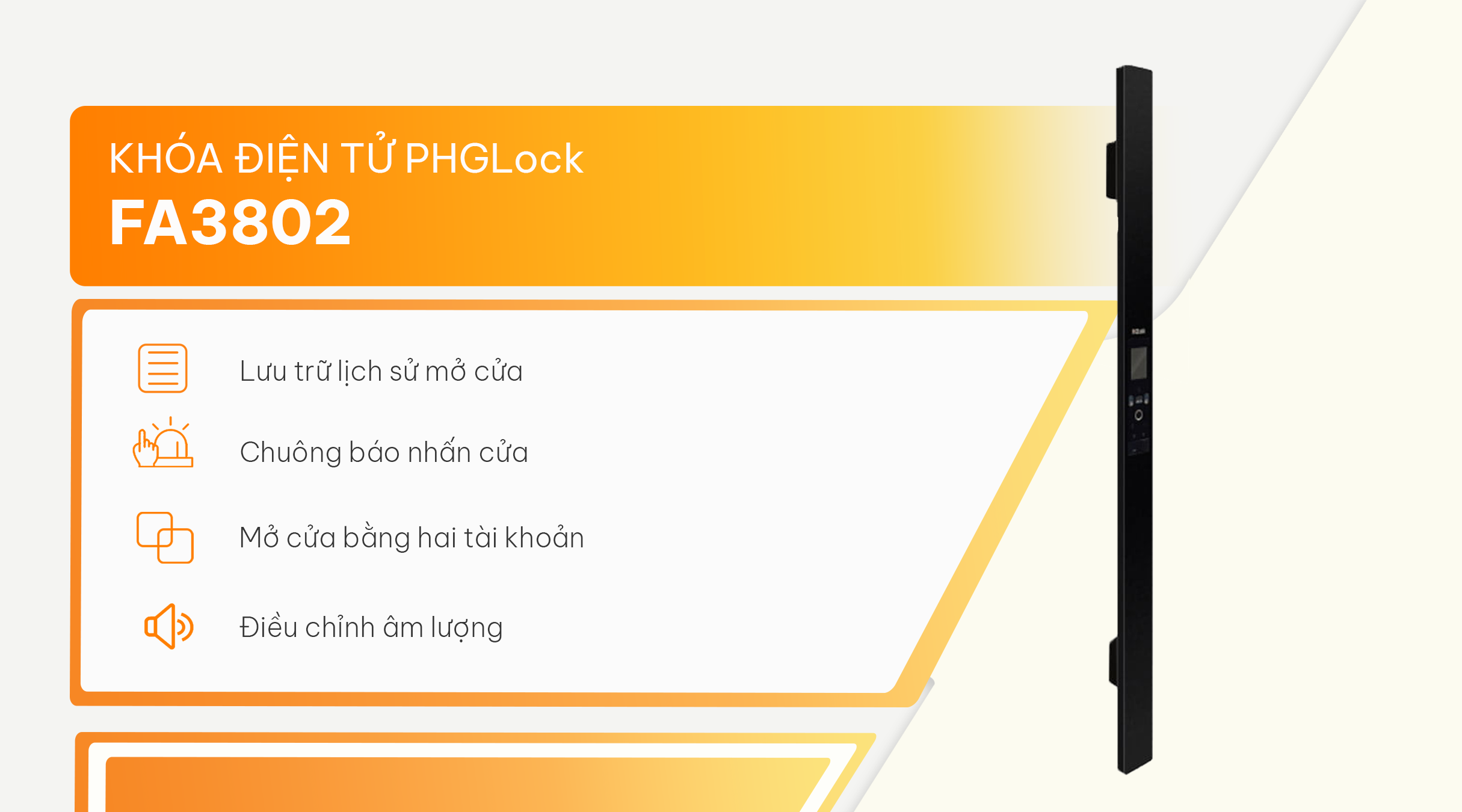 Với khả năng lưu trữ lớn và đa dạng các phương thức mở khóa, PHGLock FA3802 đáp ứng tối đa nhu cầu bảo mật và kiểm soát ra vào của người dùng, mang đến sự an tâm và tiện nghi cho mọi không gian sống.