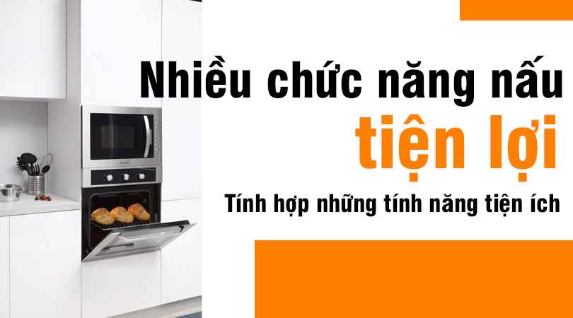 Lò nướng âm tủ được trang bị đầy đủ các tính năng tiện ích như rã đông theo trọng lượng hoặc thời gian, giúp thức ăn chín đều hơn. Ngoài ra, lò còn có chức năng nấu tự chọn và điều chỉnh theo nhu cầu, cùng với chức năng nấu nhanh để tăng mức nhiệt lượng tối đa. Chức năng hẹn giờ cũng giúp tiết kiệm thời gian chờ đợi cho người dùng.