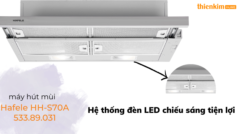 Hafele HH-S70A 533.89.031 được tích hợp thêm hệ thống đèn LED chiếu sáng tiện lợi có thể điều chỉnh được, nhằm cung cấp lượng ánh sáng nhẹ vừa đủ để trang trí, hoặc có thể thắp sáng cả khu vực bếp tạo sự tiện lợi khi nấu ăn.