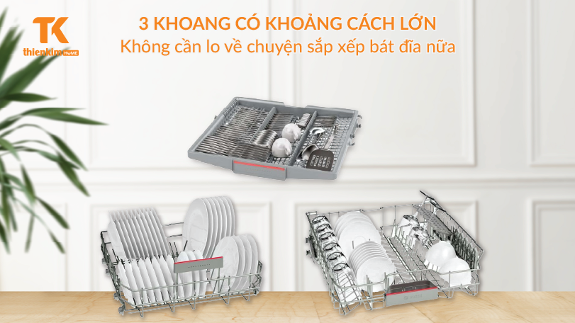 Sản phẩm với thiết kế 3 khoang rộng rãi, giúp các chị em có thể thoải mái sắp xếp chén bát vào máy, tạo cảm giác thuận tiện cho người dùng.
