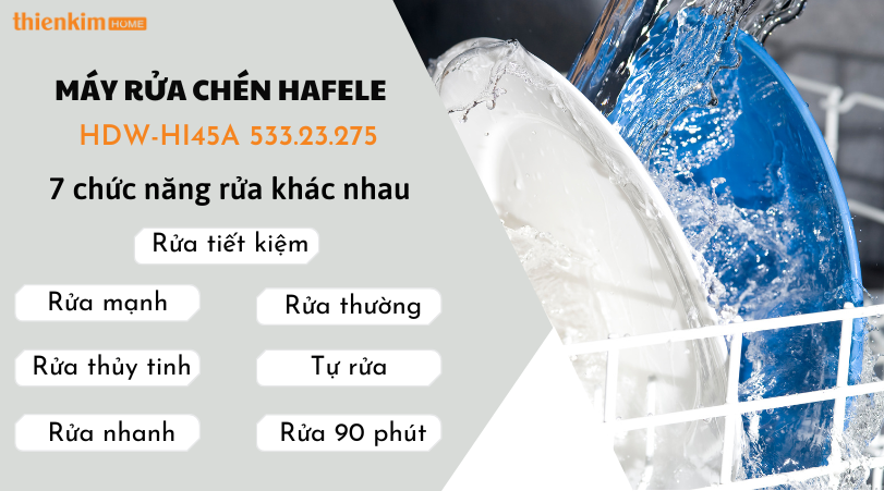 Loại máy rửa chén âm tủ bán phần này đến từ thương hiệu Hafele sở hữu cho mình đến tận 7 chức năng rửa khác nhau.