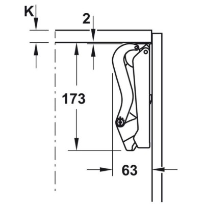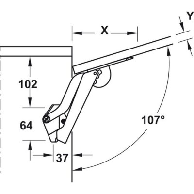 > Phạm vi lắp đặt: Dùng cho cánh tủ nâng tiêu chuẩn có chiều cao tối đa 650 mm