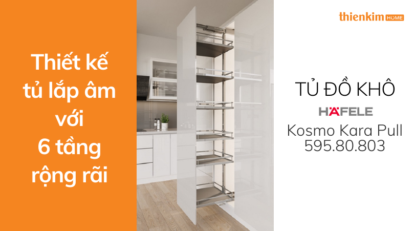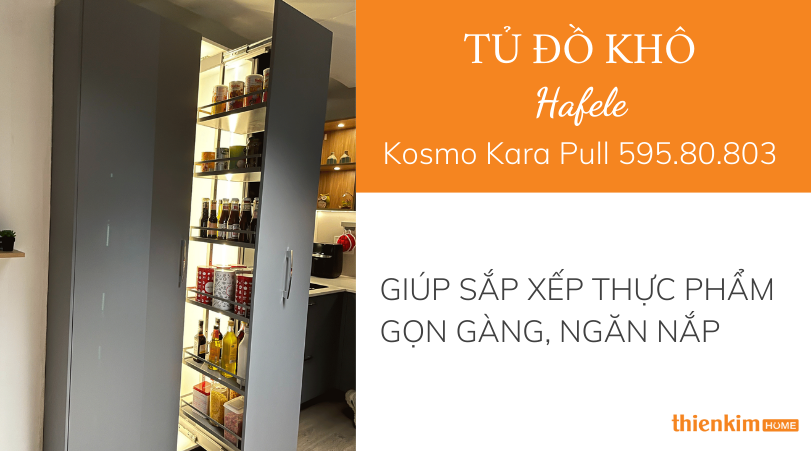 Việc lưu trữ các loại gia vị, đồ khô như: hành, tỏi, lạc, đậu… ngăn nắp, hợp vệ sinh và tiết kiệm không gian hiện nay đã không còn là vấn đề khó khăn khi đã có kệ đồ khô. Vậy kệ tủ đựng đồ khô là gì? Lựa chọn loại tủ đồ khô nào mới hợp lý? Bài viết dưới đây, Thiên Kim Home xin giới thiệu đến quý khách hàng chiếc tủ đồ khô Hafele Kosmo Kara Pull 595.80.803 đã được rất nhiều gia đình Việt lựa chọn tin dùng.
